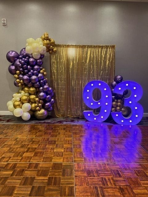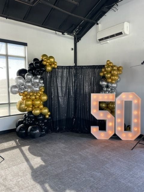 Choose from a variety of drape colors and pair it with a balloon garland.